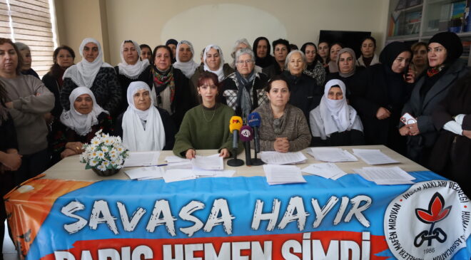 İHD Mersin Şubesi Kadın Komisyonu, Suriye ve Rojava’da kadınlara ve kız çocuklarına yönelik şiddet ile savaş suçlarına karşı BM ve AB’ye mektup gönderdi. Komisyon, yetkilileri harekete geçmeye çağırdı. İnsan Hakları Derneği (İHD) Mersin Şubesi Kadın Komisyonu, Suriye ve Rojava’da işlenen savaş suçları ile kadınlara ve kız çocuklarına yönelik şiddete karşı açık bir tutum alınması çağrısıyla Birleşmiş Milletler’e, Avrupa Birliği kurumlarına ve üye devletlere, uluslararası insan hakları örgütlerine ve kadın temsilcilere mektup gönderdi. Konuya ilişkin dernek binasında basın toplantısı düzenleyen Kadın Komisyonu, Birleşmiş Milletler’in 1325 sayılı “Kadın, Barış ve Güvenlik” kararını…